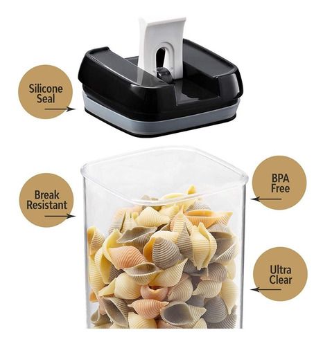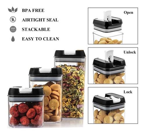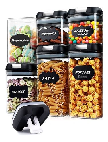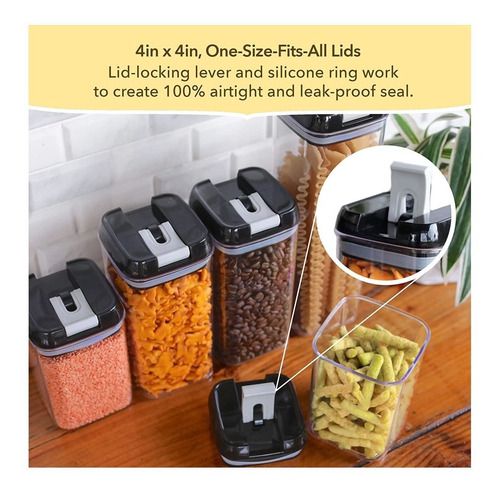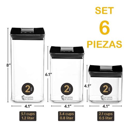 Un juego incluye 6 recipientes Perfecto para almacenar harina, azúcar, arroz, grano, nueces, frijoles, aperitivos, pasta y té.