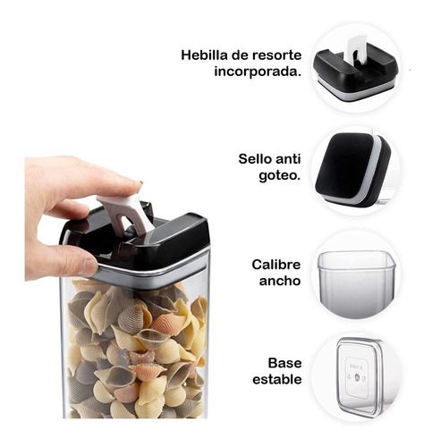 Los recipientes transparentes te permiten identificar el contenido. Hechos de material de alta calidad sin BPA, nuestros recipientes herméticos son duraderos e inastillables. El plástico de estos recipientes es muy claro, puedes identificar el contenido sin abrirlos.